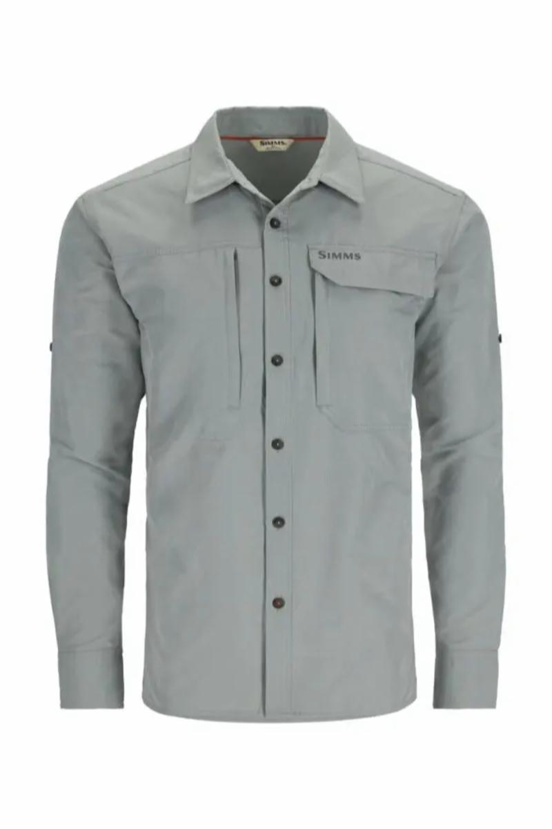 Simms Guide Shirt er laget av en pålitelig poly-nylon ripstop-blanding som har beskyttet fiskere mot solen i over et tiår. Stoffet er vevd og hurtigtørkende, og skjorten har en klassisk krage og knappelukking foran. Lommene på skjorten er ideelle for fiskere. Venstre brystlomme har en lomme med glidelås og en lomme med klaff, mens høyre brystlomme har en lomme med loddrett glidelås. Begge lommene er fôret med mesh for å drenere vann og tørke raskt. Bakstykket på skjorten er forlenget over skuldrene for å gi økt stretch og mobilitet.