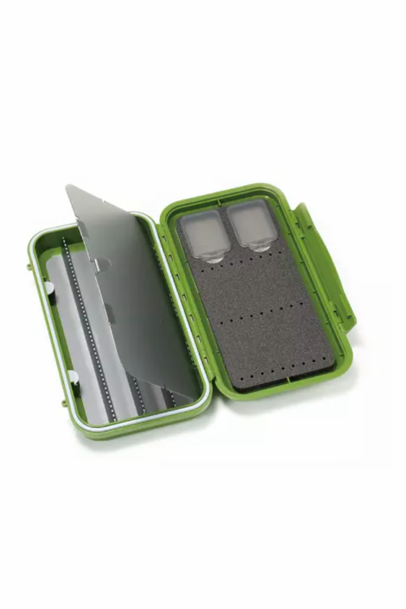 Populær flueboks for laksefiskere. Boksen har 4 langsgående rom til tubefluer. På foam siden har du tubekroker eller krokfluer. Flueboksen har også 2 små rom til mindre ting, som silikonslange biter eller Propellerfly swing tube. Boksen er vanntett.