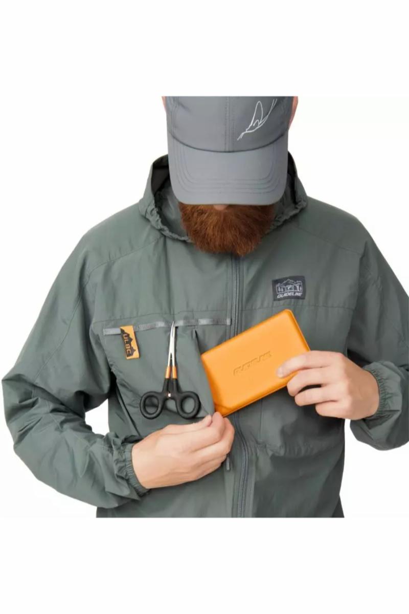 Guideline ULBC Tactical Jacket er den ultimate lettvektsjakken med en bevegelsesfrihet skapt for fluekasting. Den er myggsikker, vindtett og har gode pusteegenskaper. Et ideelt plagg for varierte friluftsaktiviteter og fisketurer. ULBC Tactical Jacket er en del av Guidelines Ultra Light Back Country konsept som er utviklet spesielt med tanke på fiskere som ønsker å spare mest mulig vekt og plass når de legger ut på lengre fisketurer med sekken på ryggen. Stoffet i denne jakken er bluesign® sertifisert hvilket betyr at det ikke inneholder skadelige kjemikalier eller substanser som garanterer et mer miljøvennlige produkt og sosialt ansvarsfulle arbeidsforhold. Ved å benytte et tettvevd nylonstoff har man klart å lage et plagg som er myggsikker, uten bruk av kjemikalier. Jakken tørker raskt, har topp UV beskyttelse på UPF 50 som gjør den meget allsidig til bruk i alle typer klima. Dette er et svalt og behagelig plagg som passer utmerket som fiskeskjorte i hele sommerhalvåret, stoffet er mykt og er støysvakt. Guideline ULBC Tactical Jacket er laget av et tynt og veldig sterkt nylonstoff. Stoffet tåler mekanisk slitasje uten problemer med at det “nupper” og jakken er derfor et perfekt plagg for fotturer under en tung ryggsekk og dens skulderstropper. Snittet er løst med god bevegelsesfrihet. Jakken har plass til et mellomlag under for å holde varmen når det blir kjøligere. Hetten har elastiske kantbånd som lukker godt mot insektene og perfekt passform som ikke forstyrrer når du beveger hodet. Ermene har elastiske bånd som gir en tett og beskyttende passform rund håndleddet, nedkanten på jakken har også elastiske bånd som gjør at den sitter godt rundt hoftene og ikke glir opp. På brystet er det to lommer med vertikal glidelås som gir enkel tilgang. De har plass til middels store fluebokser. Det er også en horisontal webbing hvor du kan knipe fast en krokløsnertang eller sette på pin on reels eller annet tilbehør. I nakken sitter det en D-ring hvor du kan henge håven lett tilgjengelig.- Laget av lett og sterkt nylonstoff med gode pusteegenskaper.