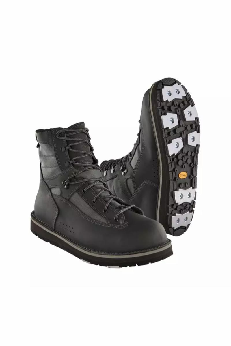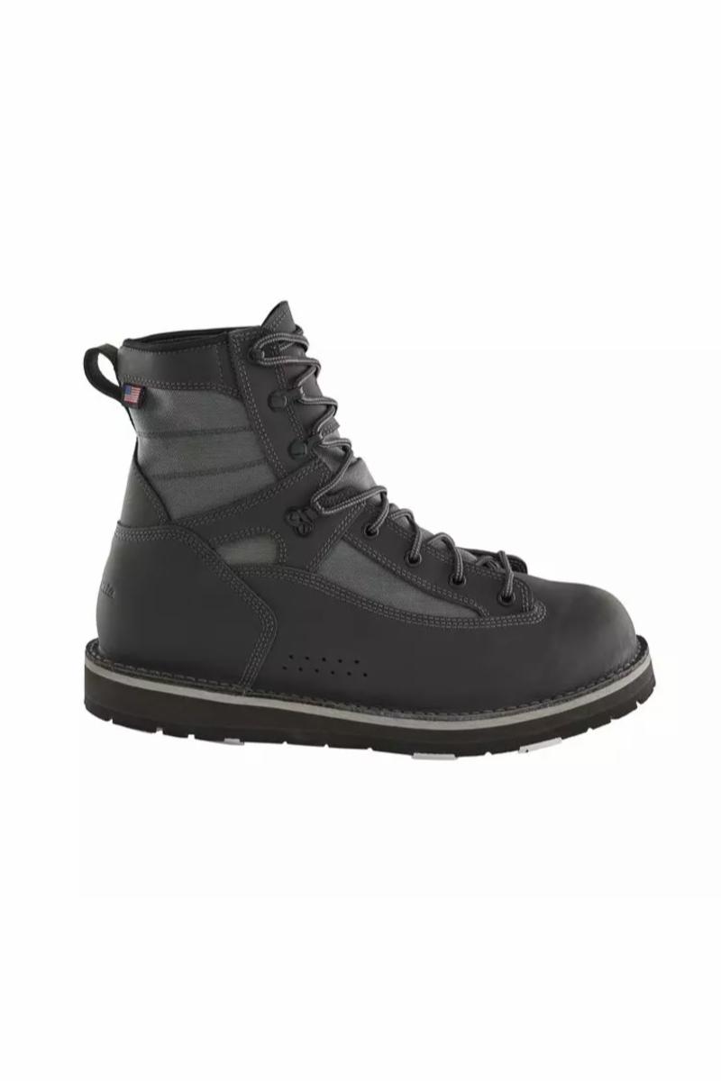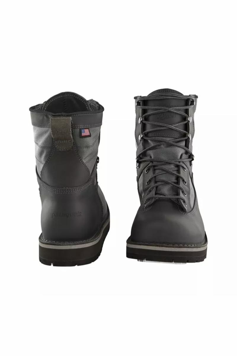 I samarbeid med Danner setter Patagonia en ny standard for vadesko. De skal være det siste par vadesko du skal kjøpe. Med det menes solid kvalitet som holder sesong etter sesong etter sesong......... De er håndlaget på Danner, som har sin fabrikk i Portland, Oregon USA. Vi har siden slutten av oktober hatt et par til test. Kombinasjonen Vibramsåle og aluminium bar har en særdeles god gripeevne. Så langt har de vært på en del turer langs kysten, samt gjennom en ukes laksefiske i Skottland uten noe slitasje på sømmer. -Laget av beste lær- og nylonkvalitet for krevende vading. -Vibram såle spesiallaget for den beste gripeevnen på våte underlag. -Patentert aluminium bars som griper særdeles godt på steiner og fjell. -Høy grad av komfort med god ankel støtte. -Det følger med et ekstra sett med aluminium bars. -En sko i størrelse 10 veier 1255gram.