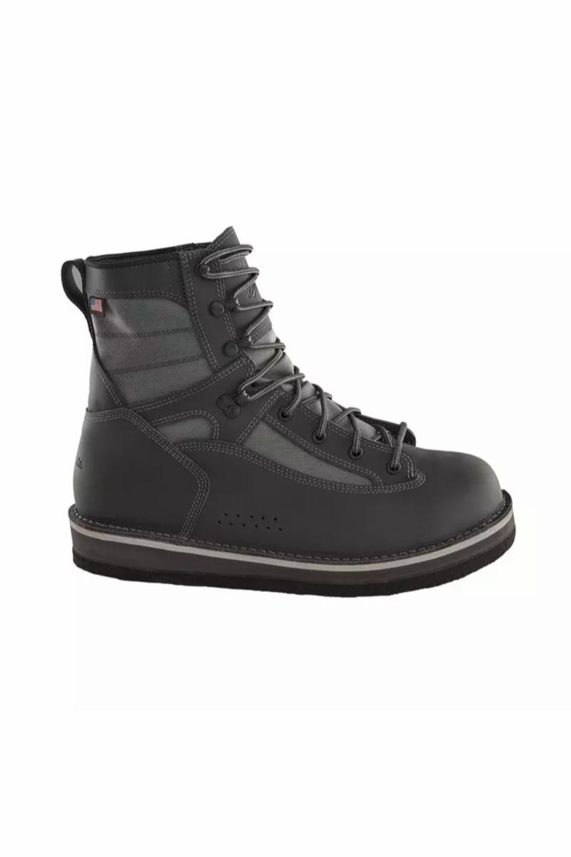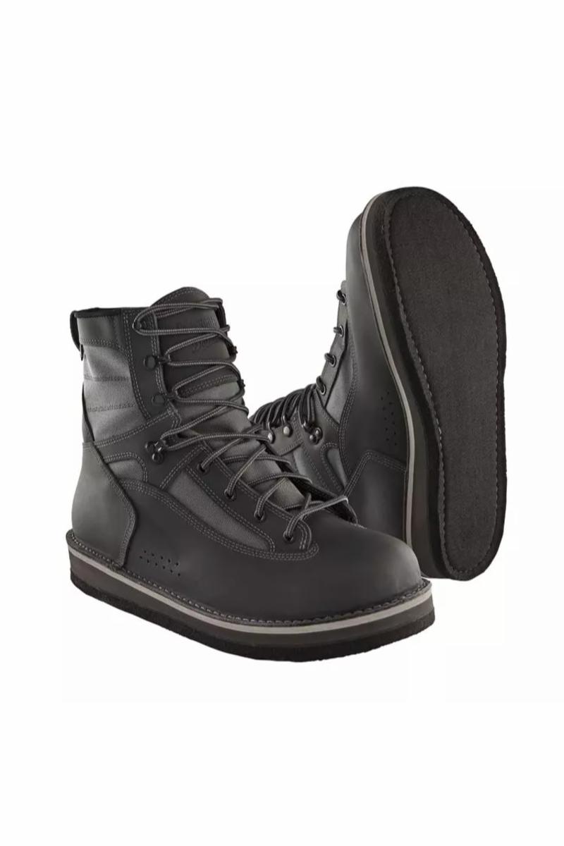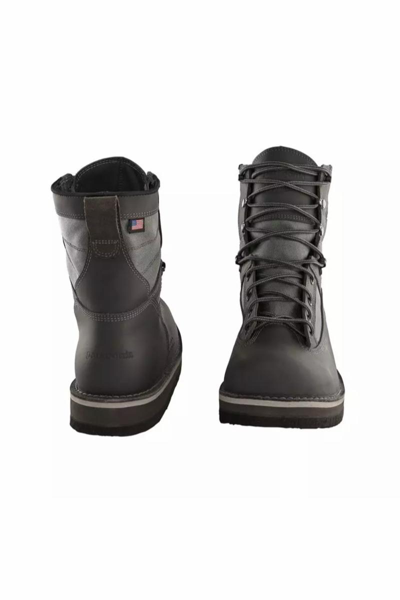 Denne modellen har filt såle. I samarbeid med Danner kommer Patagonia med ny standard for vadesko. De skal være det siste par vadesko du skal kjøpe. Med det menes solid kvalitet som holder sesong etter sesong etter sesong......... De er håndlaget på Danner, som har sin fabrikk i Portland, Oregon. Vi har siden slutten av oktober hatt et alubar par til test. Så langt har de vært på en del turer langs kysten, samt gjennom en ukes laksefiske i Skottland. Det er bare sålen som skiller alu fra filt. -Laget av beste lær- og nylonkvalitet for krevende vading. -Filtsåle som griper bra på de fleste underlag, utenom søle og vått grass -Høy grad av komfort med god ankel støtte. -Det følger med et ekstra sett med lisser -En sko i størrelse 11 veier 920 gram.